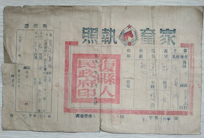 52年家畜执照70元包邮