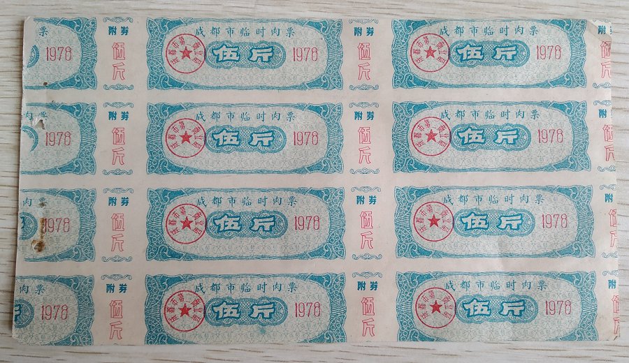 78年成都临时肉票8张10元包邮