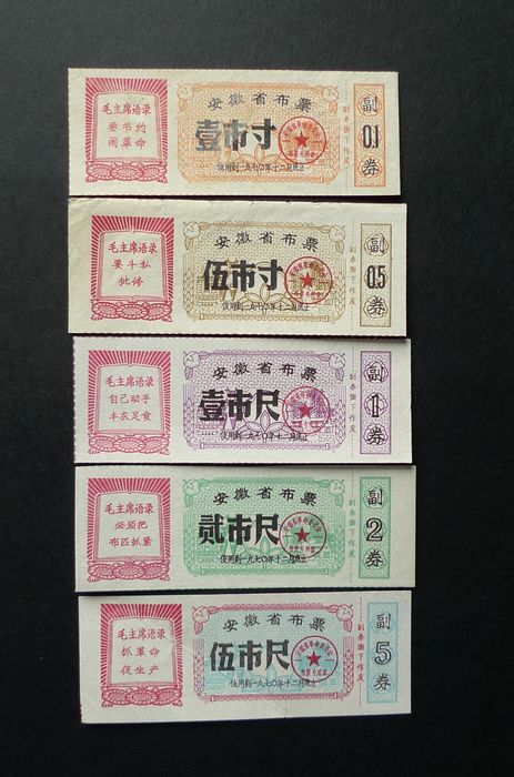 安徽64.9-65.8收购农副产品奖售布票5全35元(3尺背字)