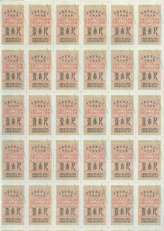 甘肃62年民用布1尺56枚整版 特价出 120元