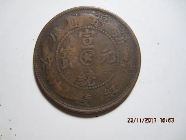 宣统年新疆红钱十文铜币 260元