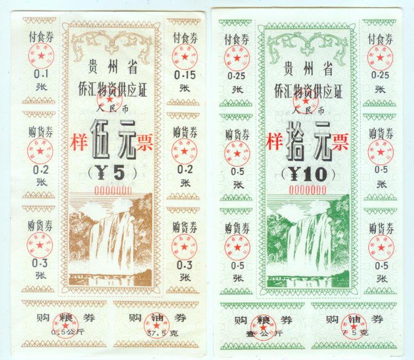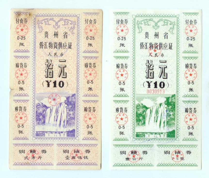 贵州市斤制和公斤制侨汇票10元券一对500元