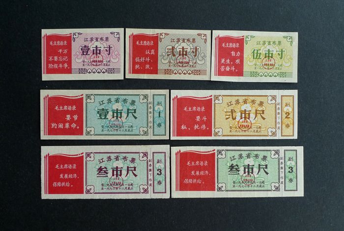 收集范围:省级、军用粮料票;军用、语录、省级布票;南京长江大桥图案的各种票证以及其它印制精美的成套粮布票