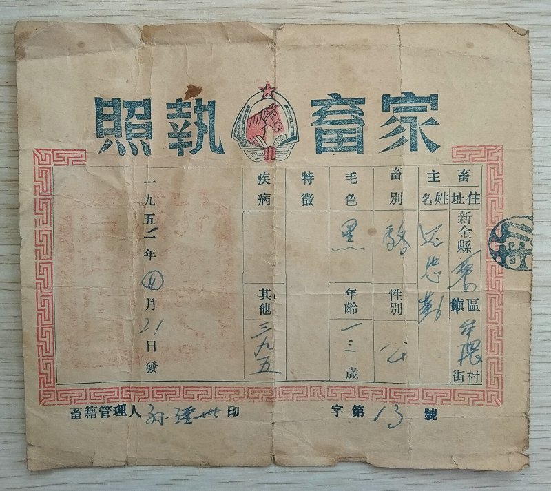 52年家畜执照、执照存根50元包邮