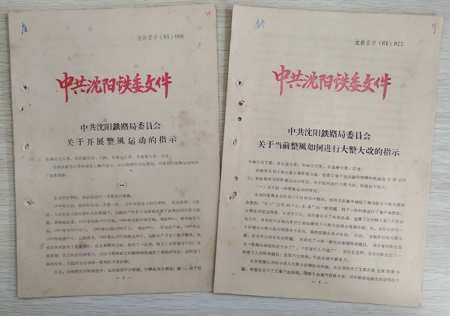 61年沈阳铁委文件2份15元包邮