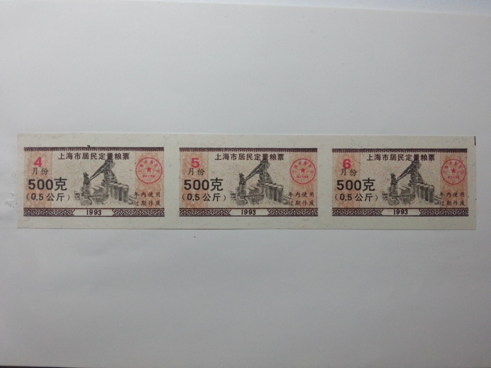 上海市93年居民定量粮油票1-3月发行了实票.4-6月尚未发行,粮油票即完成了它的历史使命.这本样本里的粮票未加盖票样二字,非常奇怪.可仔细想想也在情理之中.样本的功能主要是:1.用于鉴别假票,2.向各粮站通告发行新粮票..93年粮票对老百姓的生活来说是可有可无的.故社会上基本无人会制作假票.而粮食局工作人员也为了节约成本不再制作票样版,直接贴上实票省事.这本小小的样本,暗含了粮票历史地位的变迁.这也是人们生活水平提高的必然结果.