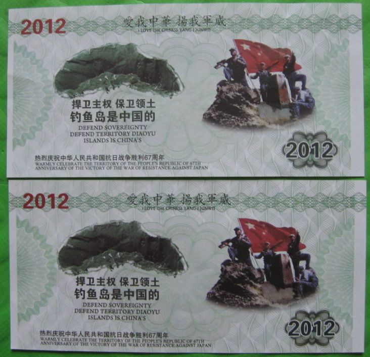又有2张钓鱼岛测试钞70元