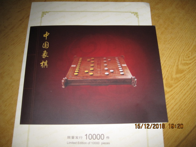 棋盘棋子棋盒均用进口乌檀木精制,车马炮.....是用银片压制而成。发行量10000副.