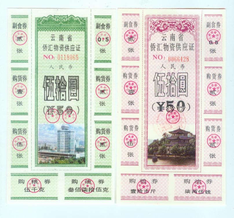 云南市斤制和公斤制侨汇票50元券一对300元