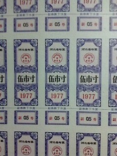 河北省1977年布票5寸 品好背白 25元/版 有20版 10版包幸运封折版邮寄 20版包挺版邮寄