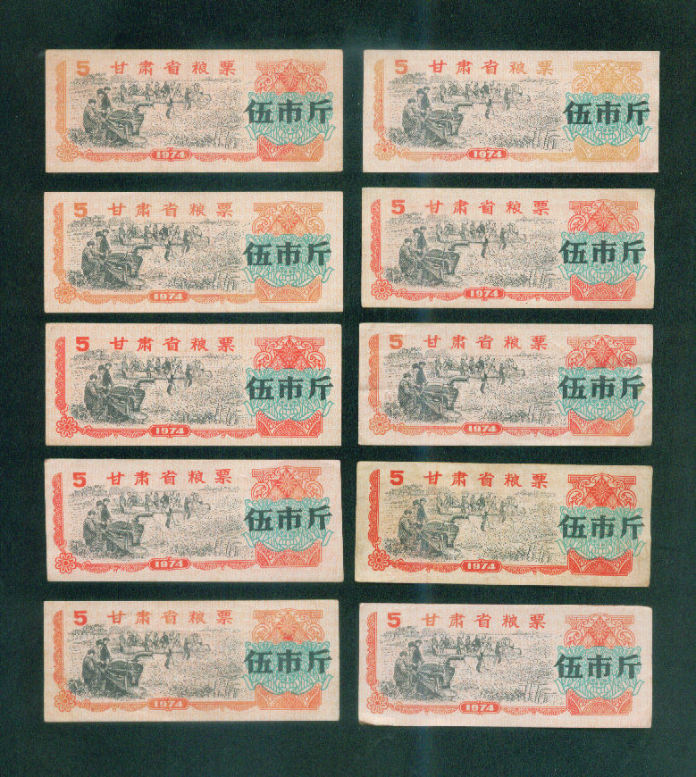 甘肃74年粮3斤5斤近新品其余4枚全新 10套50元包邮