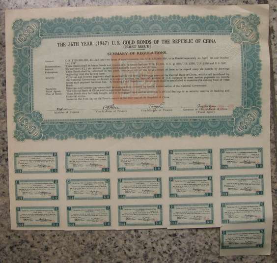 民国36年美金债券一张