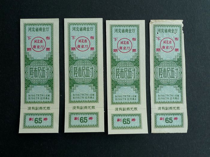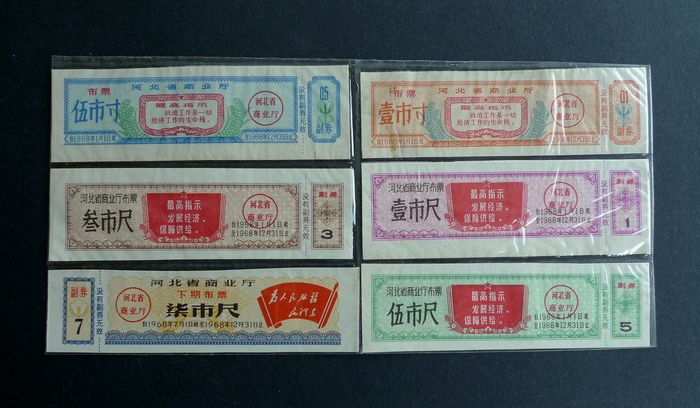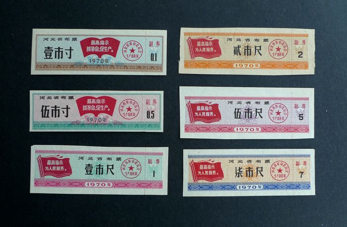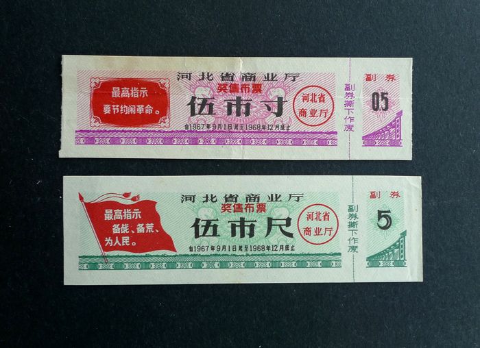 收集范围:省级、军用粮料票;军用、语录、省级布票;南京长江大桥图案的各种票证以及其它印制精美的成套粮布票