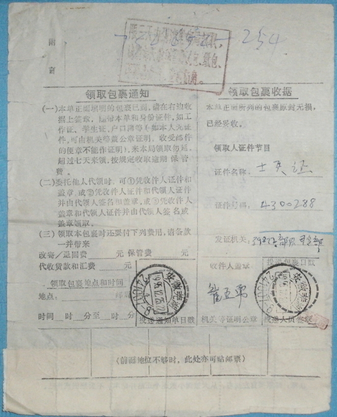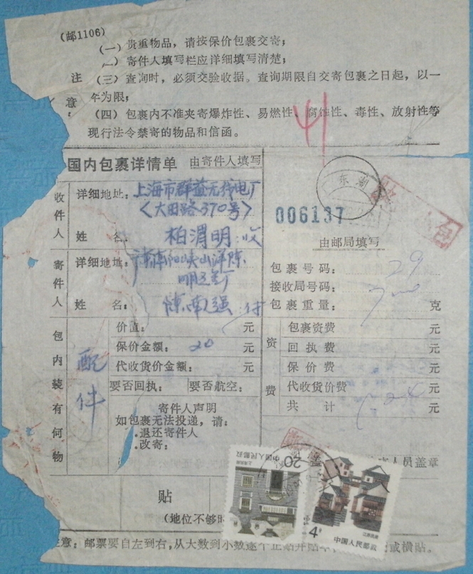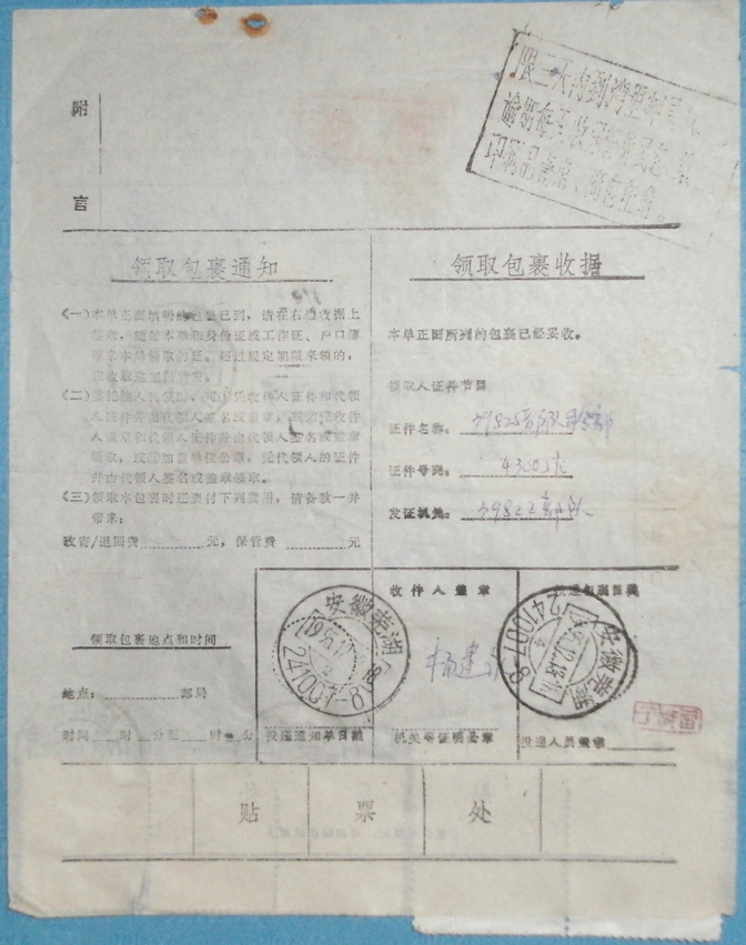 各类:邮品、附加费、包裹单、实寄封、粮油票证