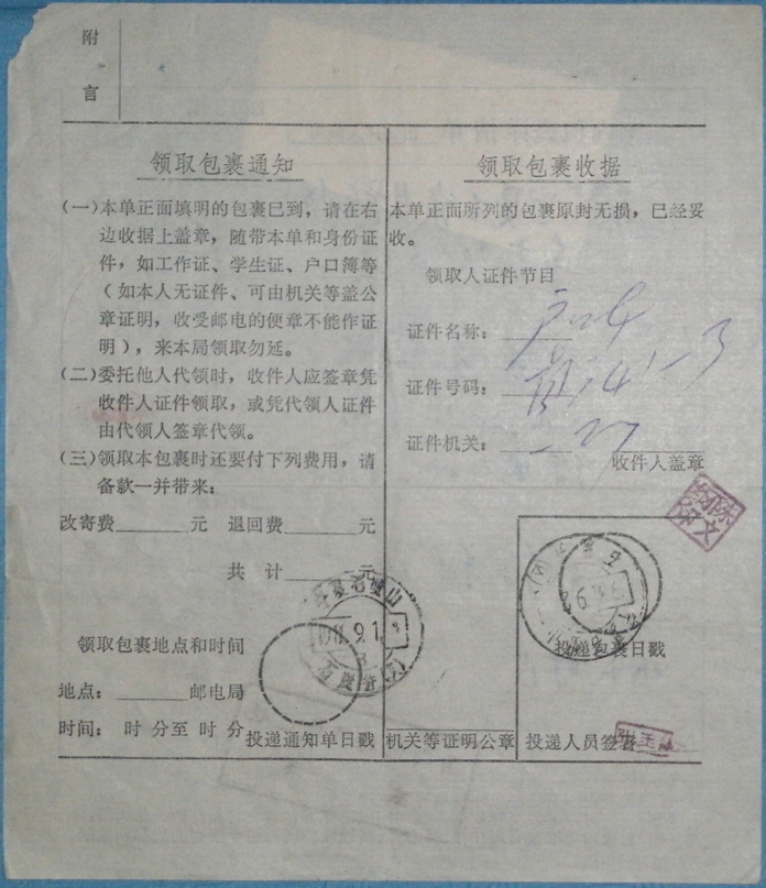 各类:邮品、附加费、包裹单、实寄封、粮油票证