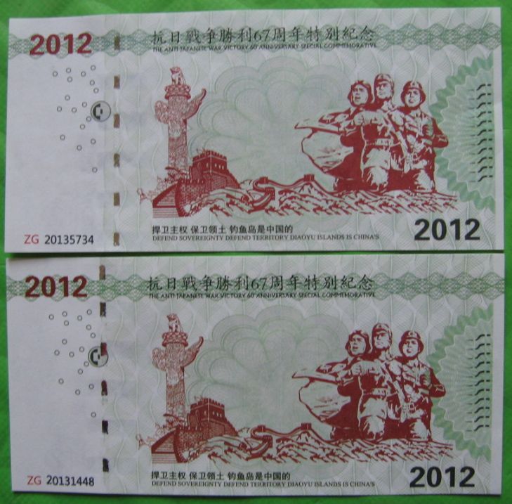又有2张钓鱼岛测试钞70元