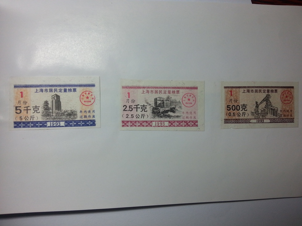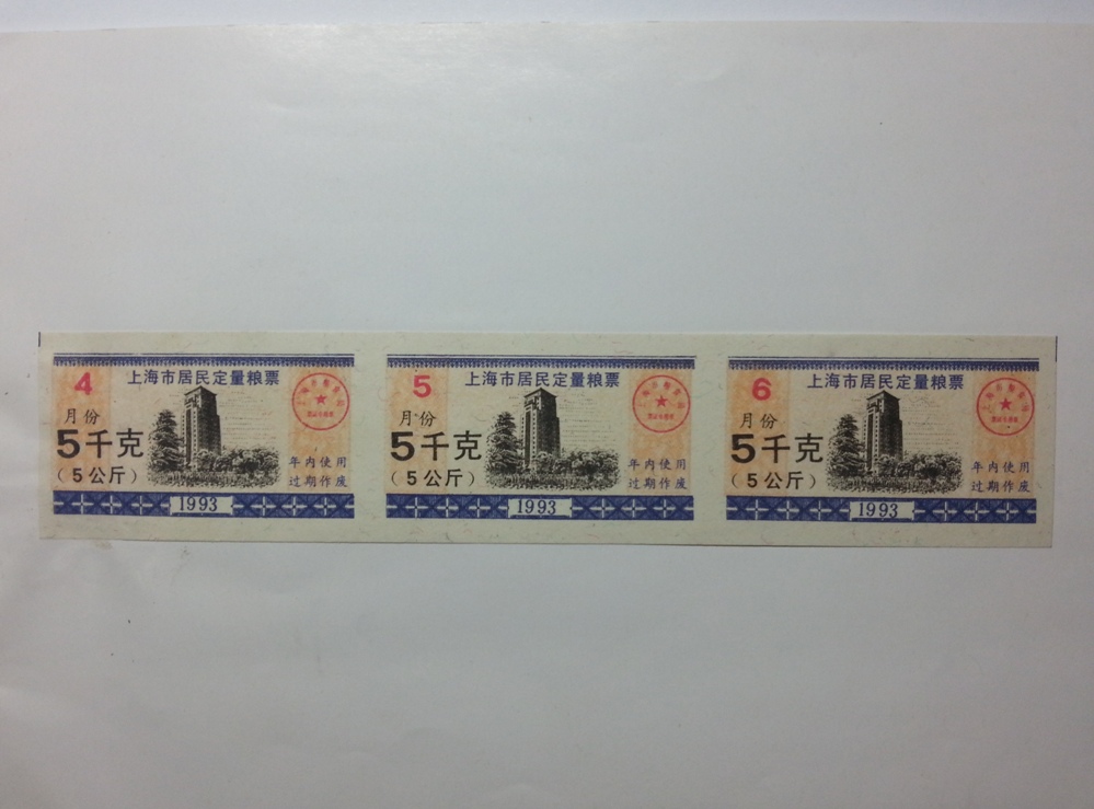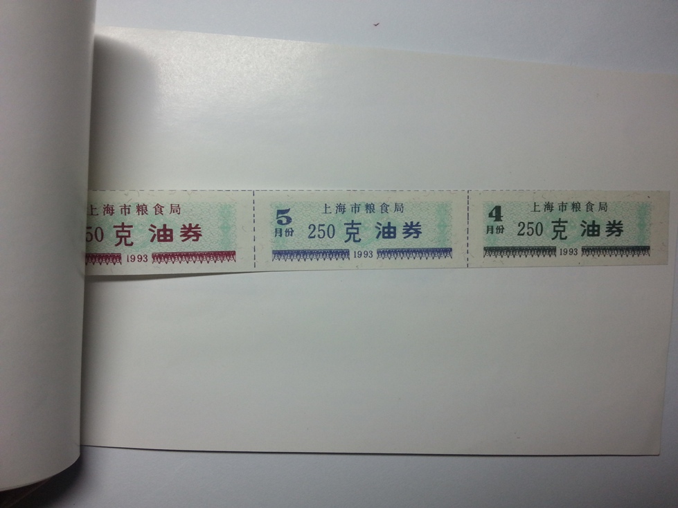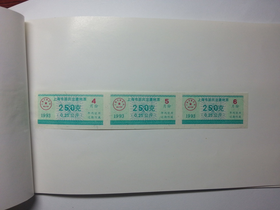 上海市93年居民定量粮油票1-3月发行了实票.4-6月尚未发行,粮油票即完成了它的历史使命.这本样本里的粮票未加盖票样二字,非常奇怪.可仔细想想也在情理之中.样本的功能主要是:1.用于鉴别假票,2.向各粮站通告发行新粮票..93年粮票对老百姓的生活来说是可有可无的.故社会上基本无人会制作假票.而粮食局工作人员也为了节约成本不再制作票样版,直接贴上实票省事.这本小小的样本,暗含了粮票历史地位的变迁.这也是人们生活水平提高的必然结果.