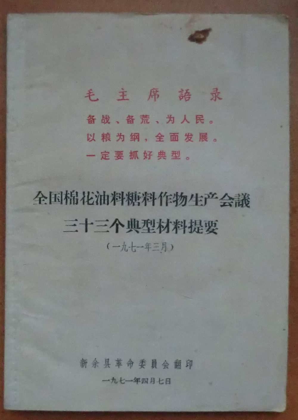 <71年全国棉花油料糖料作物生产会议三十三个典型材料提要>共33面 / 30元包挂