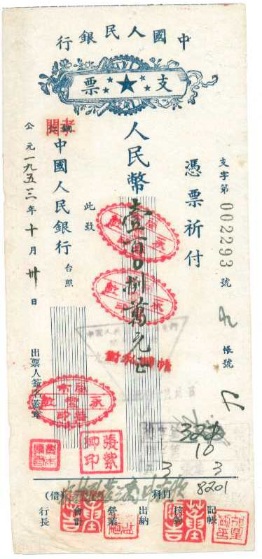 » 少见支票15元一张