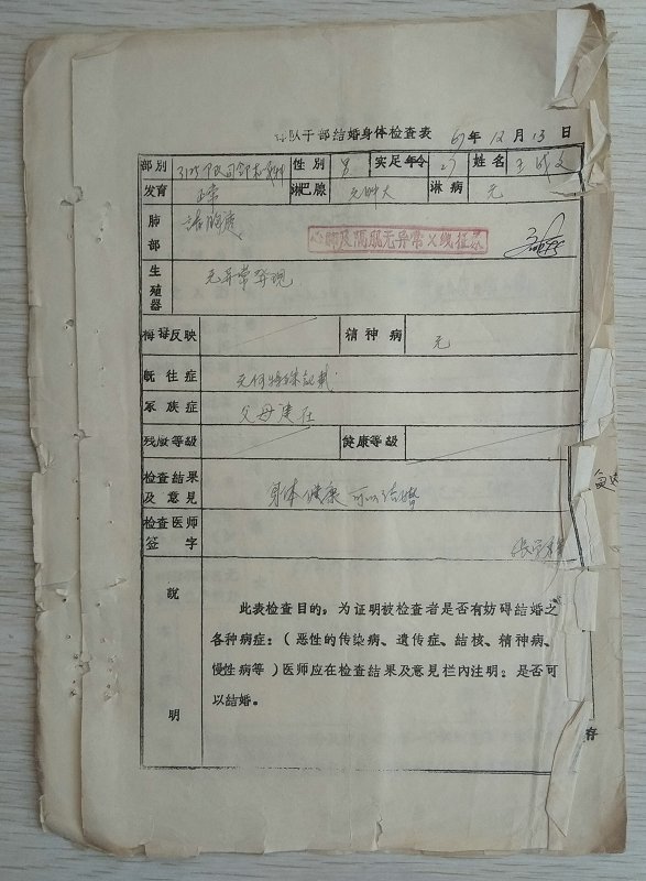 67年部队干部结婚申请90元包邮