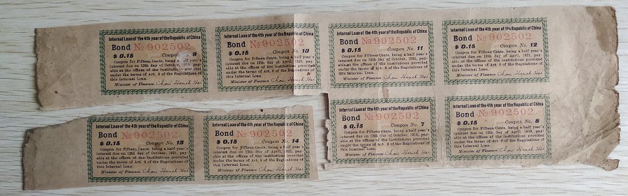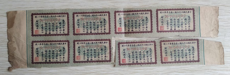 » 民国4年内国公债息票8张120元包邮
