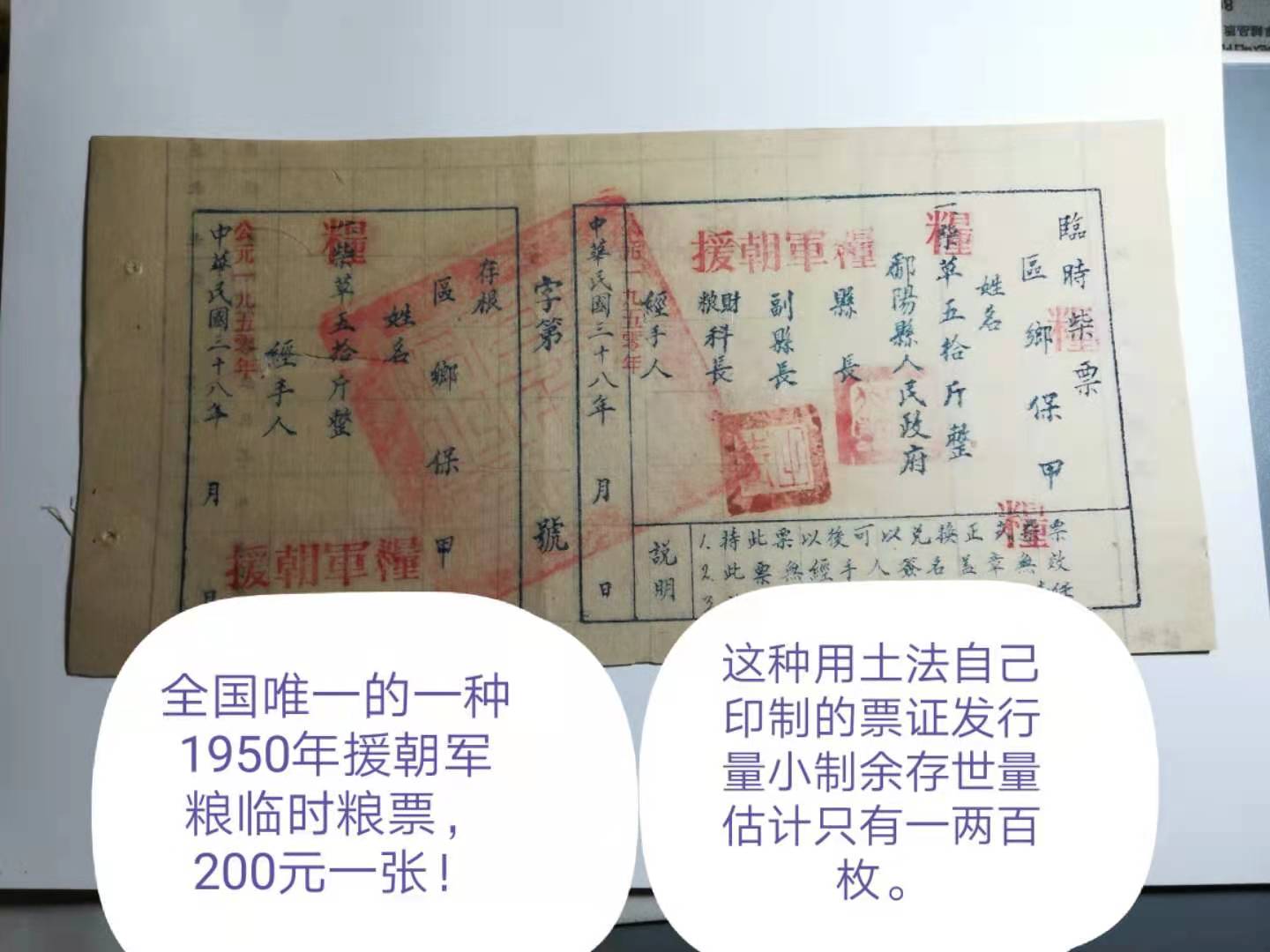 1950年援朝军粮粮票