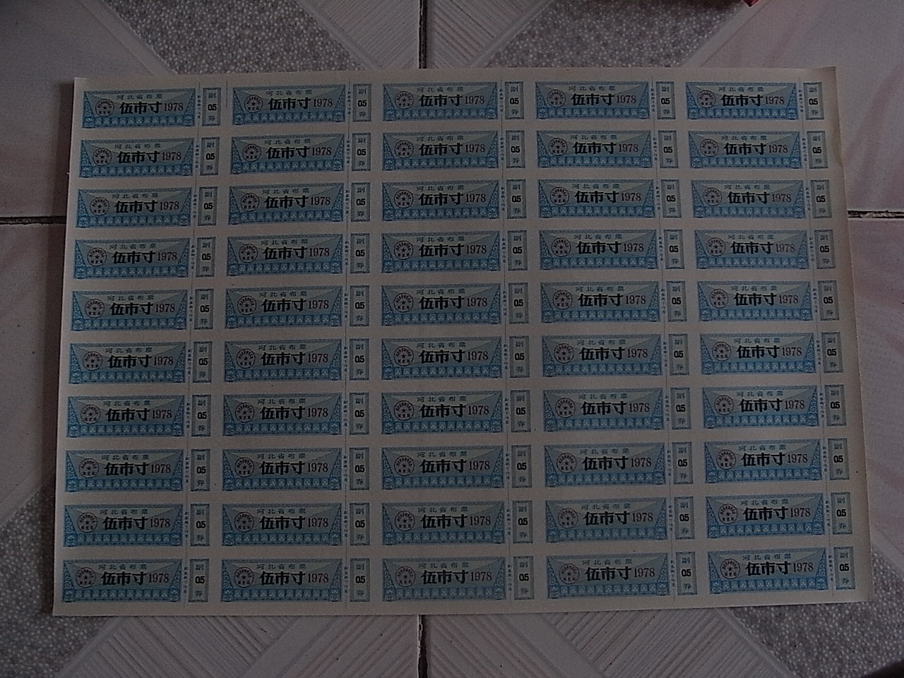 河北省1978年布票5寸版票 品好背白 20元/版 有20版 10版包幸运封邮寄 20版包挺版邮寄