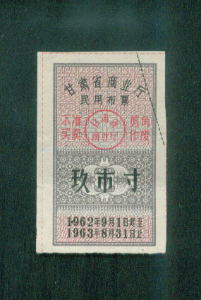 甘肃布=藏62年民用9寸(筋票)25元/枚.