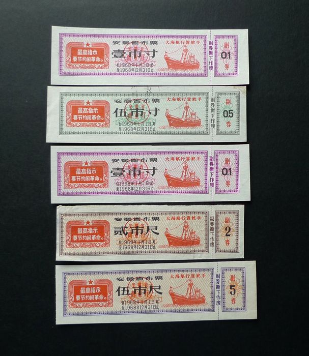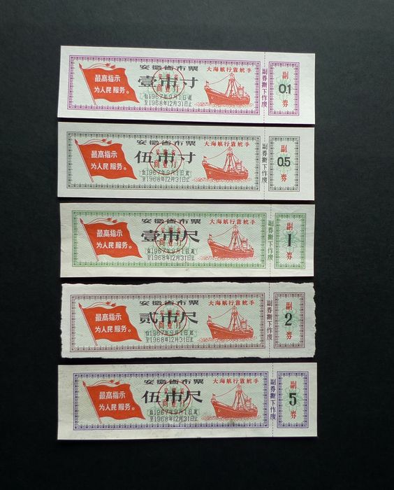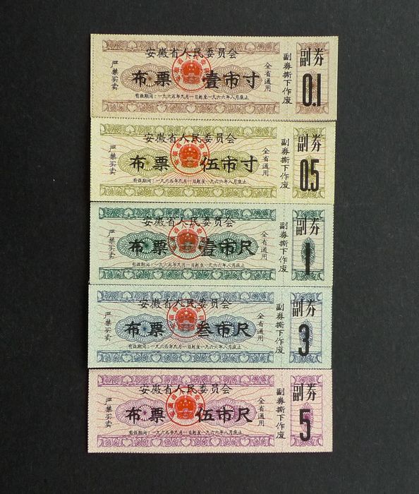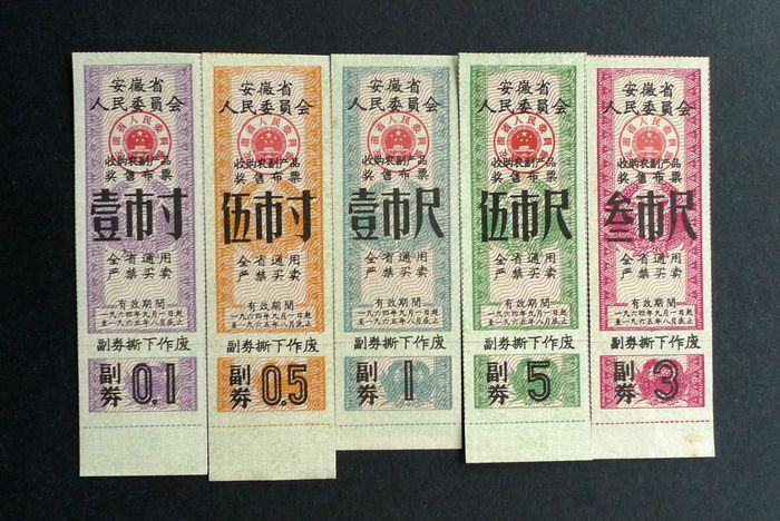 安徽64.9-65.8收购农副产品奖售布票5全35元(3尺背字)