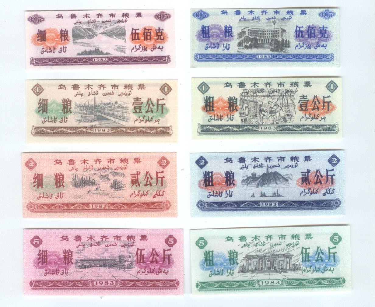 乌鲁木齐83年粮票粗细粮两小套8枚60元