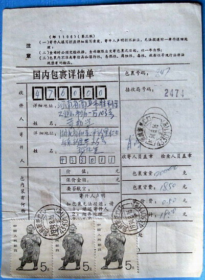 各类:邮品、附加费、包裹单、实寄封、粮油票证