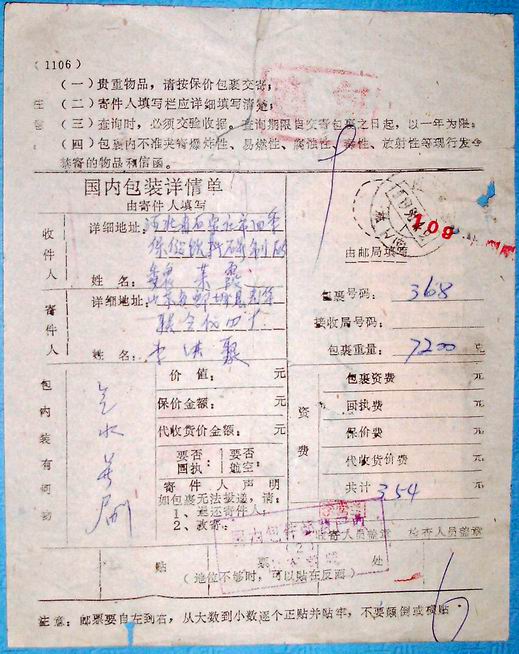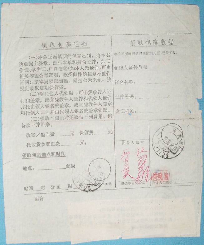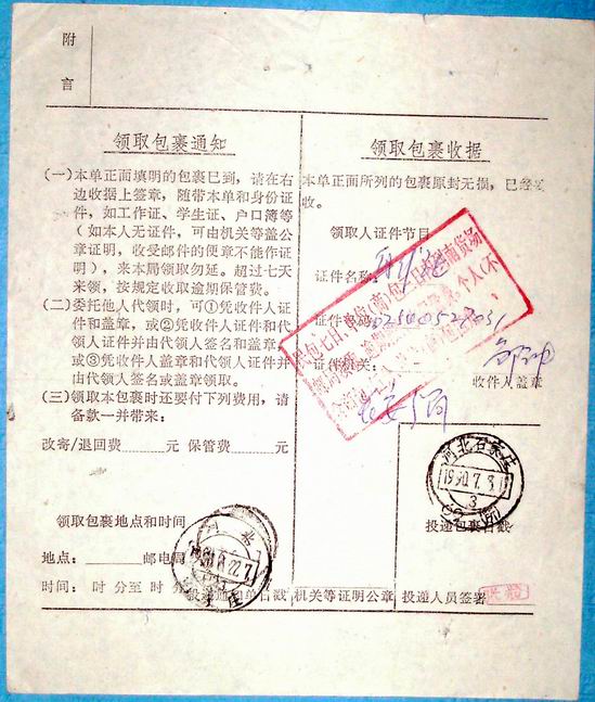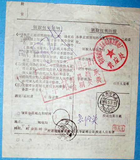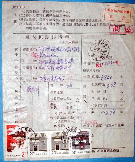 » 各类:实寄封、戳、包裹单